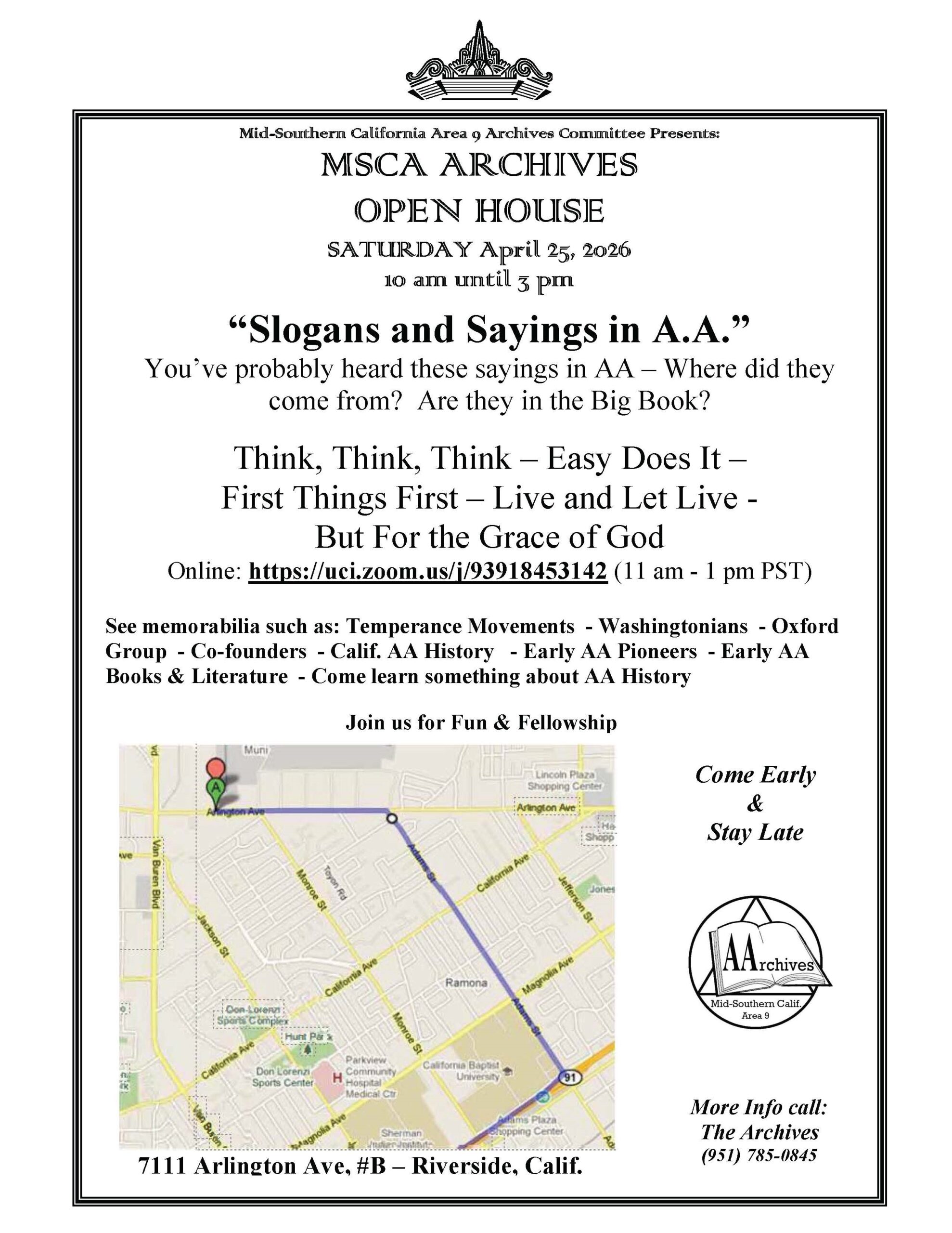 Please Note: Due to missing / non-archived District 5 historical information, below is just a ‘bit of history’ on District 5 and is an ongoing ‘work in progress’. District 5 is extremely grateful to Mitchell B. (our current MSCA09 Panel 72 Delegate / Past MSCA09 Archives Chair and District 5 Panel 66 Secretary) for the district information he was able to provide us. Be sure to check out Area09’s Archives website: https://msca09aa-archives.org/ for more ‘fellowship’ history. Or better yet…go and visit the archives at: MSCA 09 Headquarters, 7111 Arlington Avenue, #B, Riverside, California 92503.